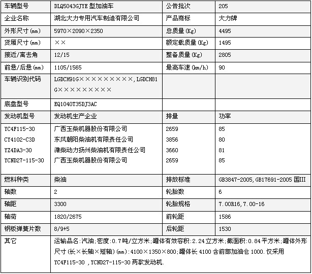 東風(fēng)輕卡系列加油車有,東風(fēng)小霸王東風(fēng)福瑞卡,東風(fēng)多利卡等,按公告尺寸罐體容積可達(dá)6.3立方,朝柴96馬力,2.2噸前橋,后橋3噸,氣剎,軸距:3300,歐二底盤,改國(guó)三手續(xù),7.00輪胎,整車價(jià)格:6.95萬(wàn)元(含稅控加油機(jī)及15米加油管)。