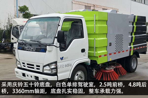 五十鈴掃路車底盤采用慶鈴五十鈴底盤,白色單排駕駛室,內(nèi)飾設計簡潔大方,配置齊全,2.5噸前橋,4.8噸后橋,3360mm軸距,底盤扎實穩(wěn)固,整車承載力強。