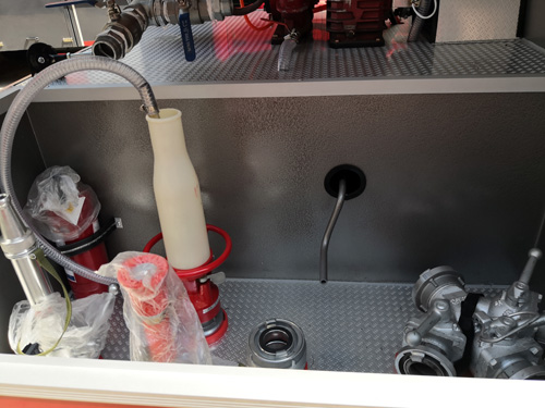 上裝配置:15噸水泡消防車,13噸水罐,材質(zhì)Q235碳鋼,2噸泡沫罐,材質(zhì)304不銹鋼。CB10/60上海茸申消防泵,PL48成都威斯特消防炮,其他標(biāo)配。上裝詳細圖片如下 :