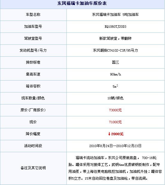 東風(fēng)福瑞卡加油車活動(dòng)期間讓利2000元