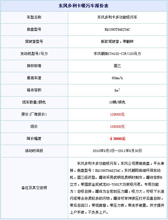 東風(fēng)多利卡多功能吸污車(chē)降價(jià)3000元