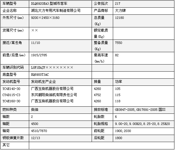 大力牌客車(chē)技術(shù)參數(shù)說(shuō)明