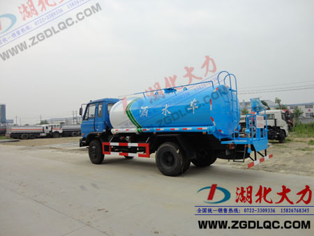 灑水車一般功能為前沖(噴)后灑、帶側(cè)噴、帶后工作平臺、平臺上安裝綠化灑水高壓炮(炮噴射形狀可調(diào):直沖狀、大雨、中雨、毛毛雨,可連續(xù)調(diào)節(jié),最大射程可達28米),帶專用灑水泵,帶消防接頭,帶自流閥,帶自吸自排功能,帶濾網(wǎng),可選裝打藥卷盤、氣動閥控制,還可選裝空調(diào)、警示燈等。